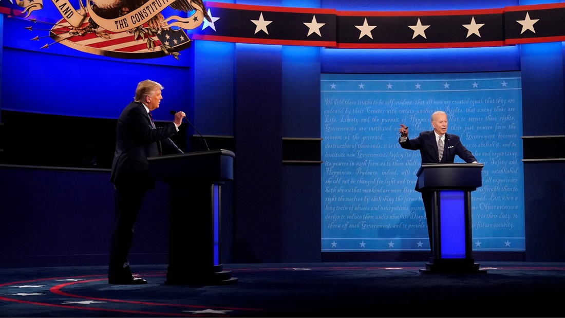 辩论现场一片混乱,由于忍受不了特朗普的耍嘴功力,拜登好几次叫特朗普闭嘴。