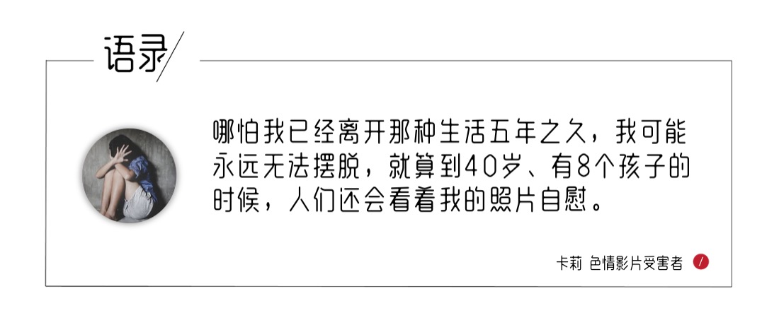 来自美国色情影片受害者卡莉(Cali)表示,从9岁开始,她就被养父母卖去拍摄色情影片,而她被虐待的影片也被放到色情网站。卡莉今年已经23岁,当年对她施暴的部分罪犯也已绳之于法,可是,当年拍下的影片却还在网上流传,甚至被利用来赚钱。多年来,许多受害者跟卡莉的遭遇如出一辙,有者在饱受他人异样眼光及精神折磨下,走上绝路。