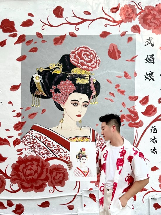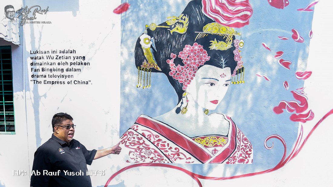 事缘,马六甲州政府为了送给即将抵达马六甲进行旅游宣传的范冰冰一个惊喜,抢先在上个星期二(6月4日)开始在马中友好植树广场绘制了一幅10英尺长和高的壁画,还精心挑选了范冰冰在大热连续剧《武媚娘传奇》中的武则天扮相为原型。