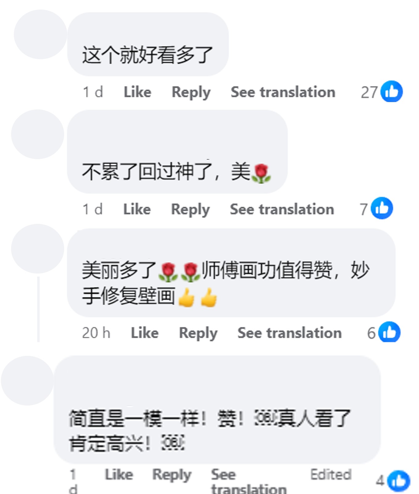 “美丽多了,师傅画功值得赞,妙手修复壁画。”