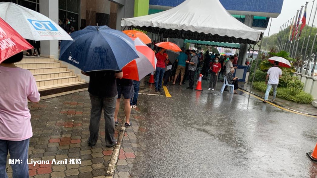 也有网民看到此贴文后也分享自己的经历,推特用户Liyana Aznil表示,今午现场还下起了大雨,导致民众被迫挤入屋檐下,难以保持社交距离。然而,大排长龙的情况丝毫不减,平均每10分钟,长队才前进了1米。