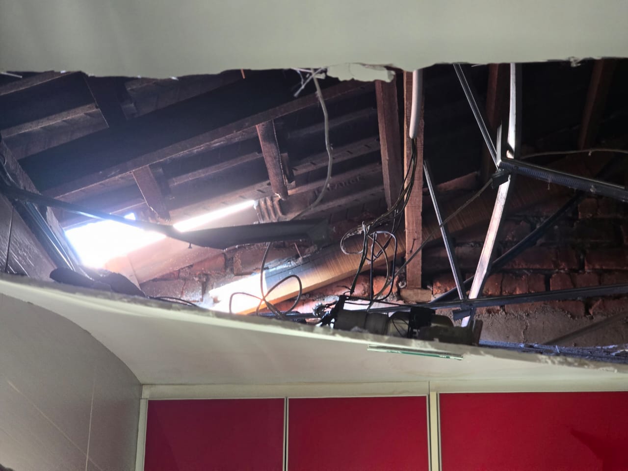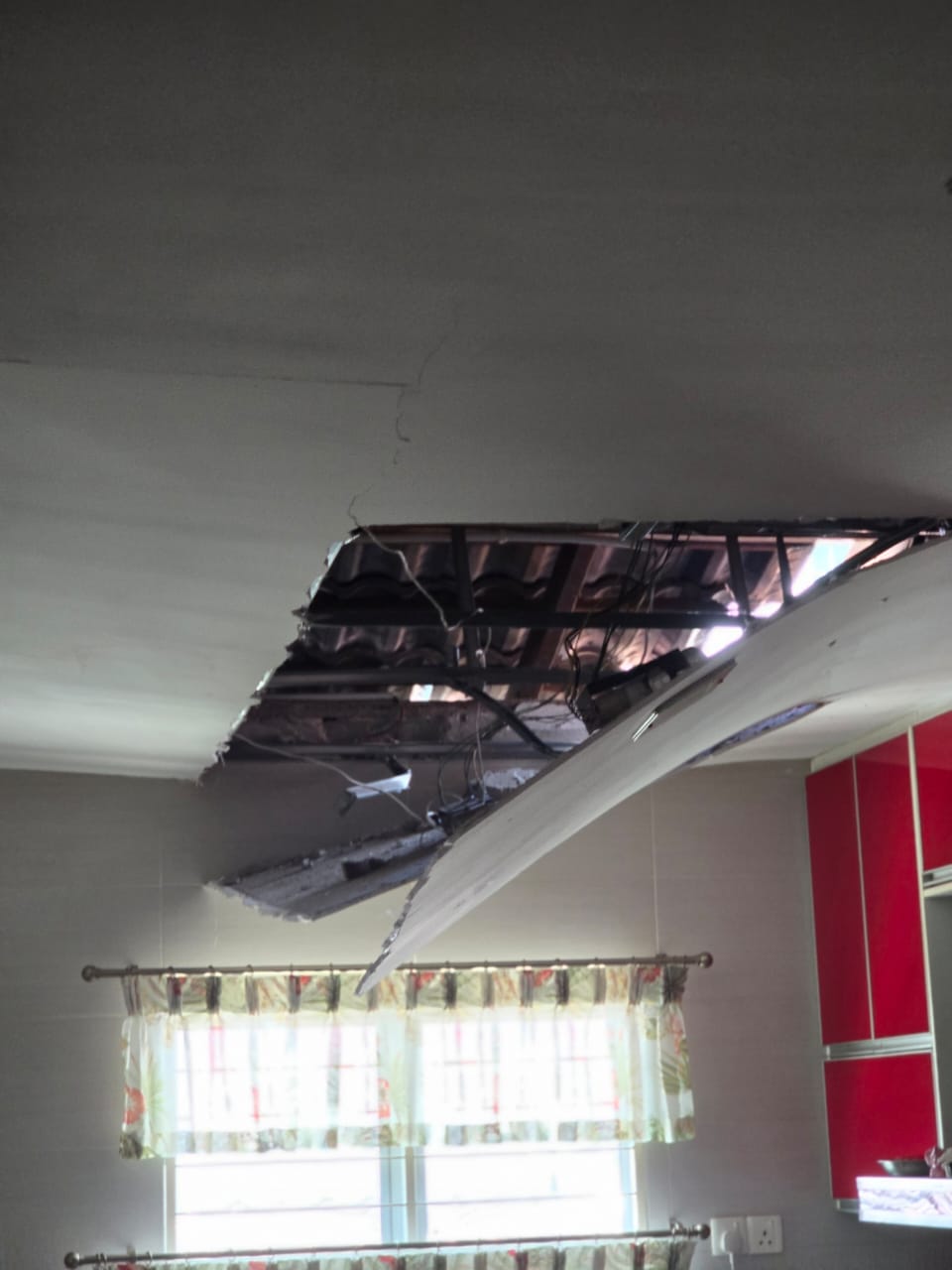 另一边厢,灾民提供给《热点》记者的画面可见,尽管其房子受损程度并不如靠近爆炸点的房子严重,但还是有明显受损痕迹。其中1名灾民的房子天花板悬挂在空中,本来藏在天花板的电线也暴露在外。