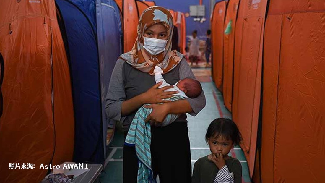 失去家园的灾黎被安顿在救灾中心。