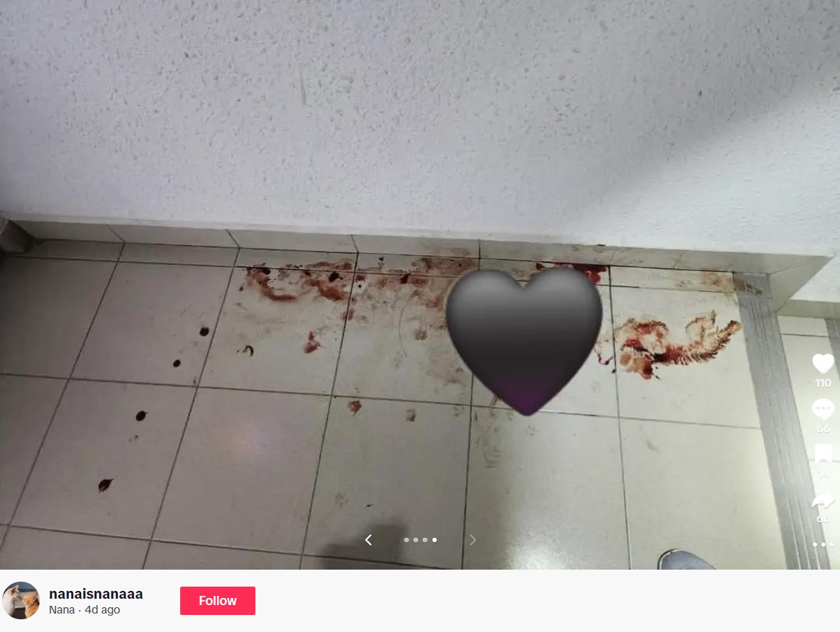 截图自社群媒体小红书“艾莉丝吐槽日常”账号根据该网友透露,事发地点惨不忍睹,地面血迹斑斑。