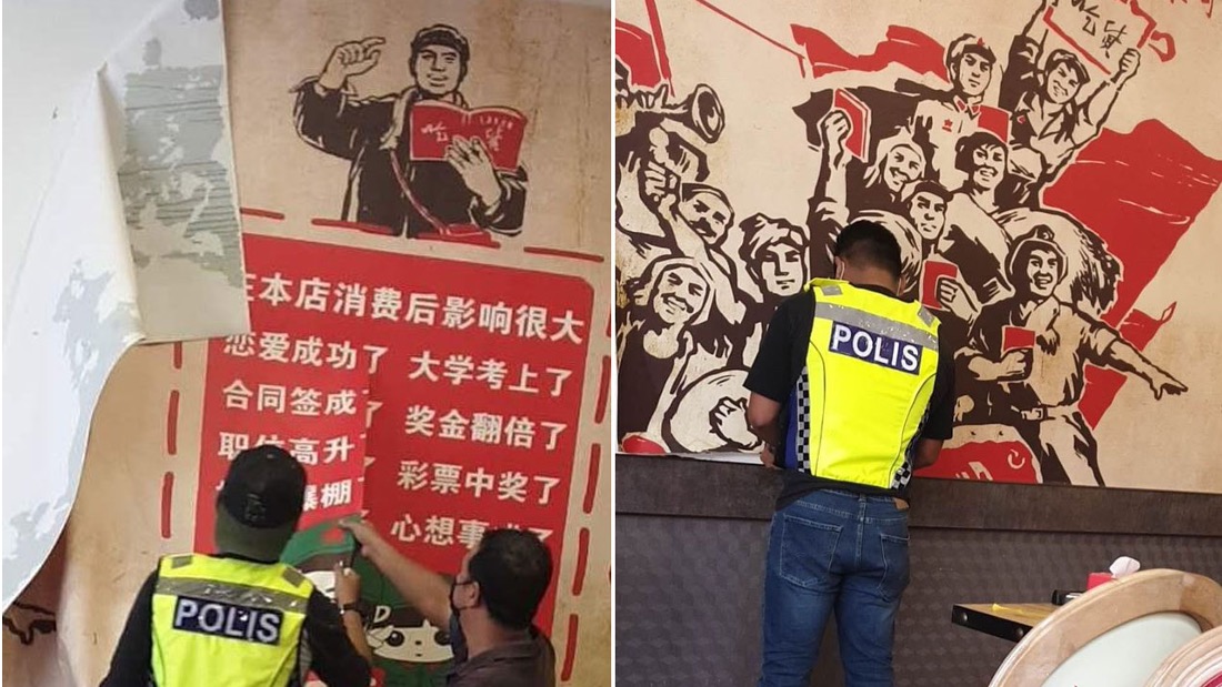近日在槟城、柔佛新山、马六甲和吉隆坡等地,接连出现餐馆的装潢设计含有中国共产党革命元素,以及印有中共领袖毛泽东肖像,结果遭警方一一上门拆除取缔,负责人也皆被带走问话。