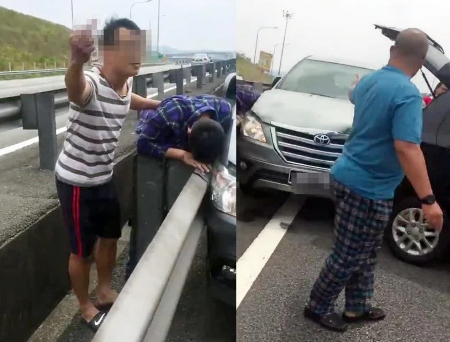 在姚伟良鸣笛要求对方停车不果后,两辆轿车随后在高速大道上上演追逐戏码,直到两辆轿车来到案发现场路段,遇上交通堵塞才停下来。