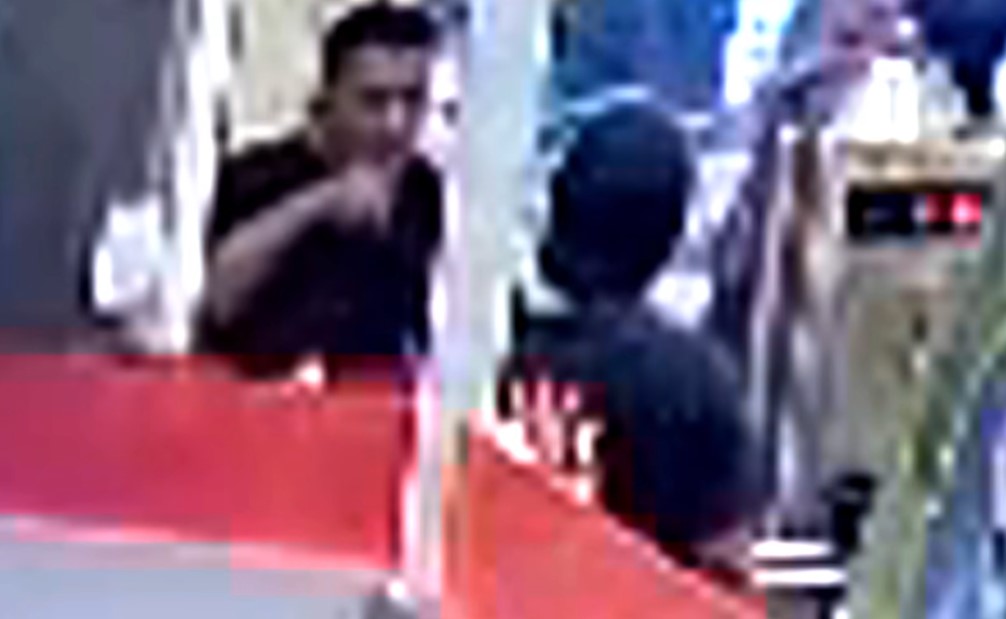 黑衣男子因找零问题向冰淇淋店员发怒。(截图自ABS影片)男子威胁为店员上手铐
