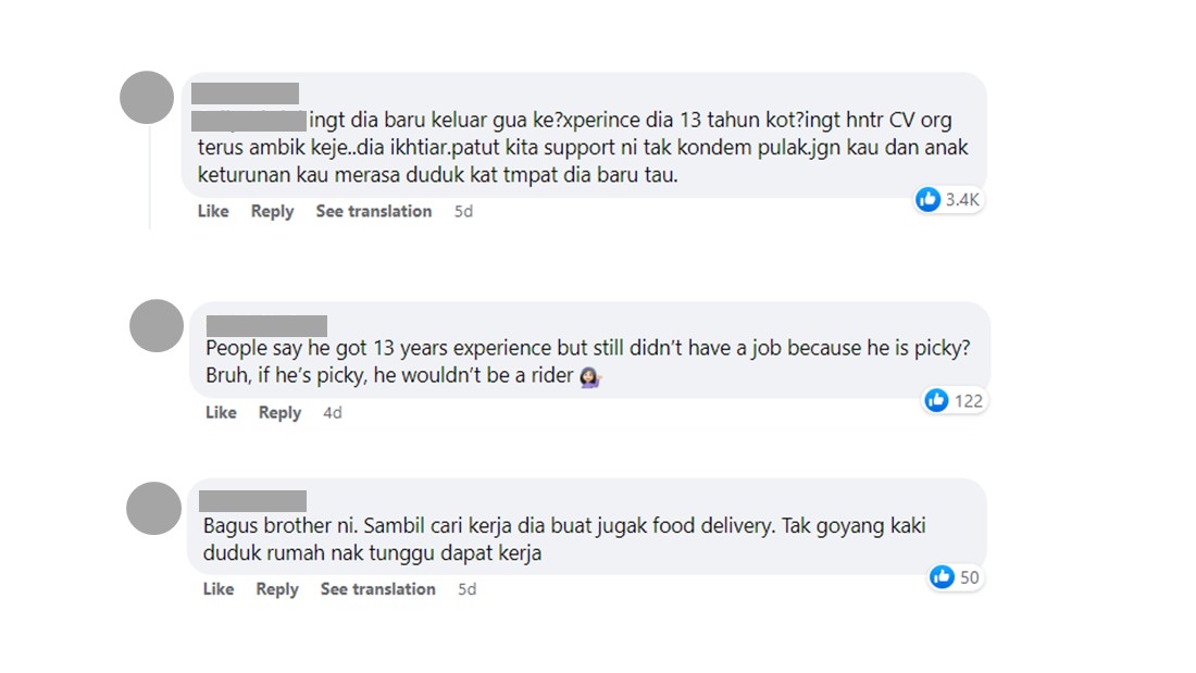 面对部分留言指,男子或许因为挑剔而找不到工作,也有人出来帮腔男子,认为应给予男子鼓励而非落井下石。