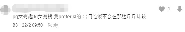 另外,有网民则表示,槟城的女生有趣,但吉隆坡的女生有钱,所以他更倾向于找吉隆坡的女生。