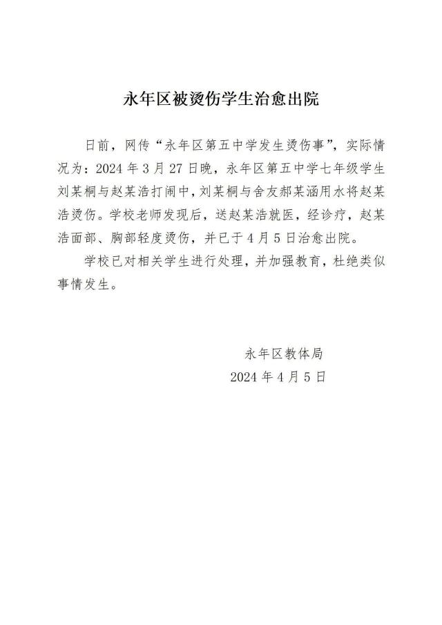 校方和老师发现后,马上将赵姓同学送往医院接受治疗。在留院就医一个多星期后,赵姓同学才得以康复回家。