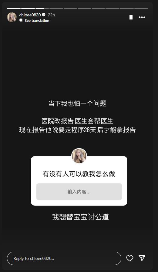 截图自 @chloee0820 Instagram的限时动态。