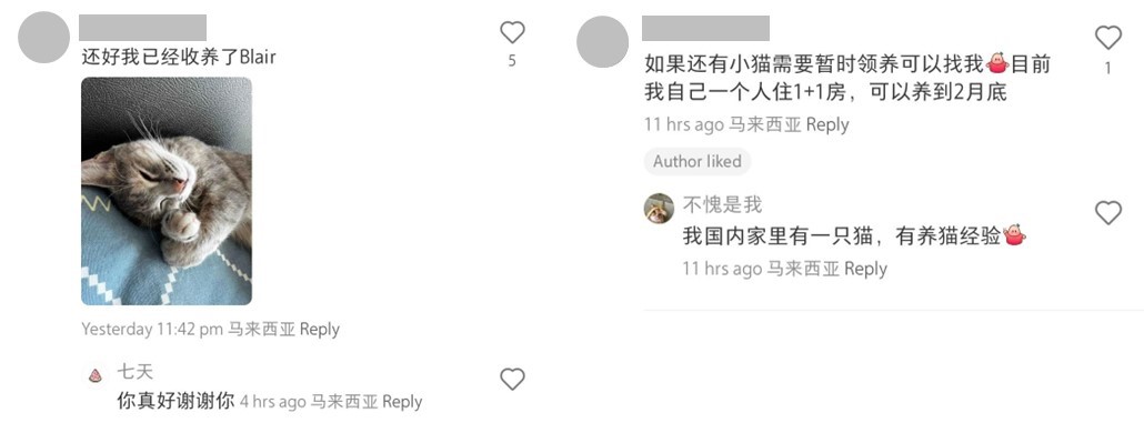 也有人在评论区相互分享情报,呼吁有心人士收养猫咪。