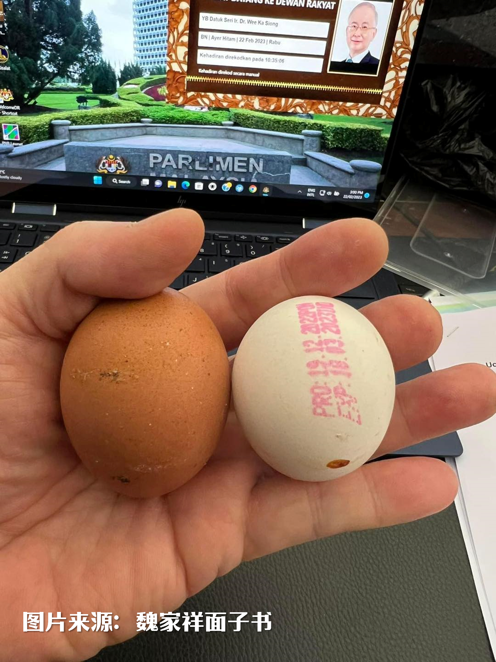 较早前,魏家祥曾在国会挑起鸡蛋短缺问题,更当场拿出3粒鸡蛋对比,指印度进口的鸡蛋又小又贵。