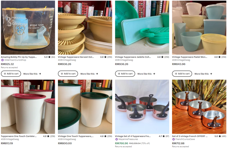 随着这个密封容器老字号即将走入历史,不少人看准时机找商机,将家里各式各样的特百惠产品放到网上售卖,包括保鲜盒、锅子、杯子、玩具等等。