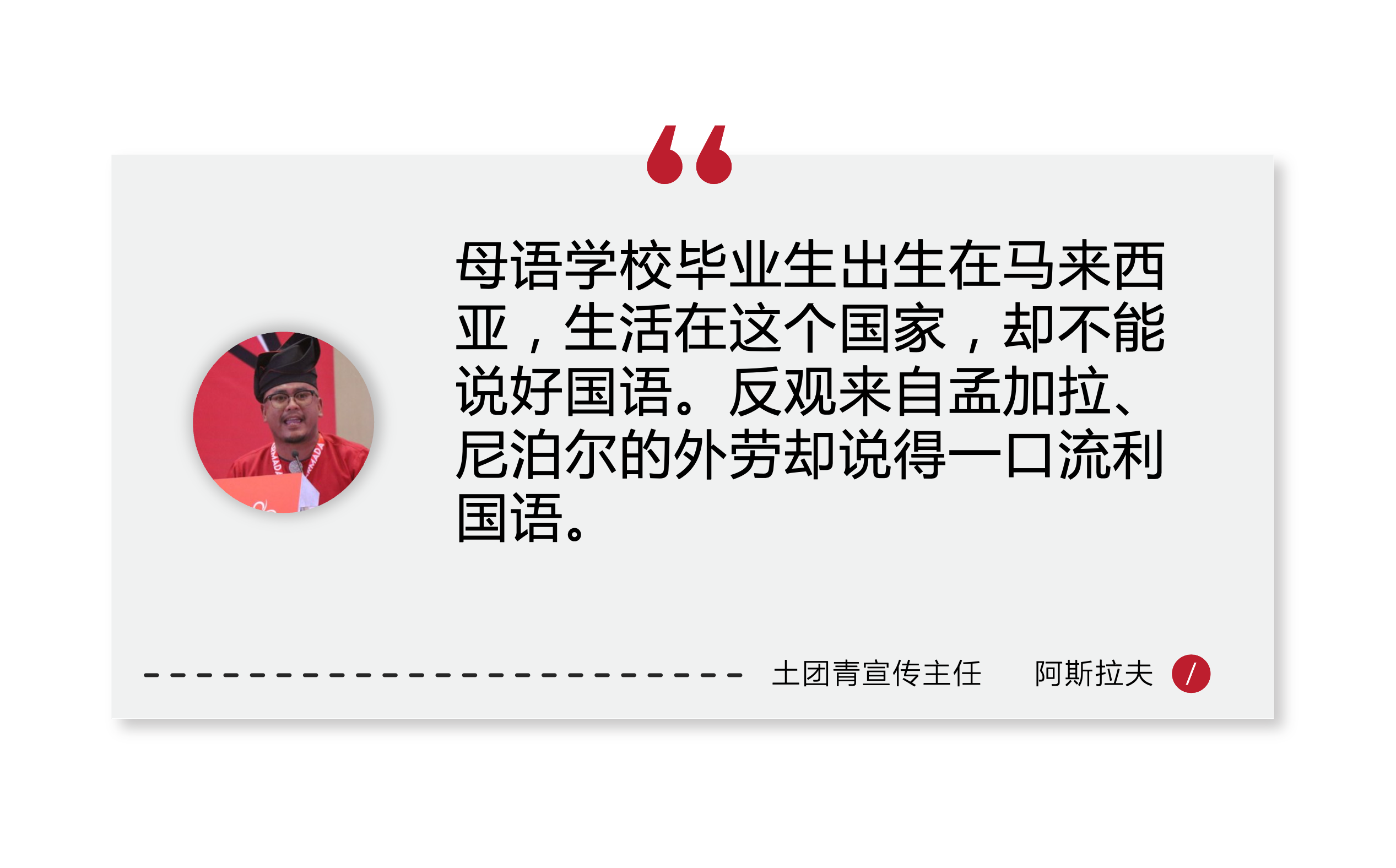 除此之外,阿斯拉夫还调侃母语学校毕业生,讽刺他们的国语连来马工作的外劳都不如。
