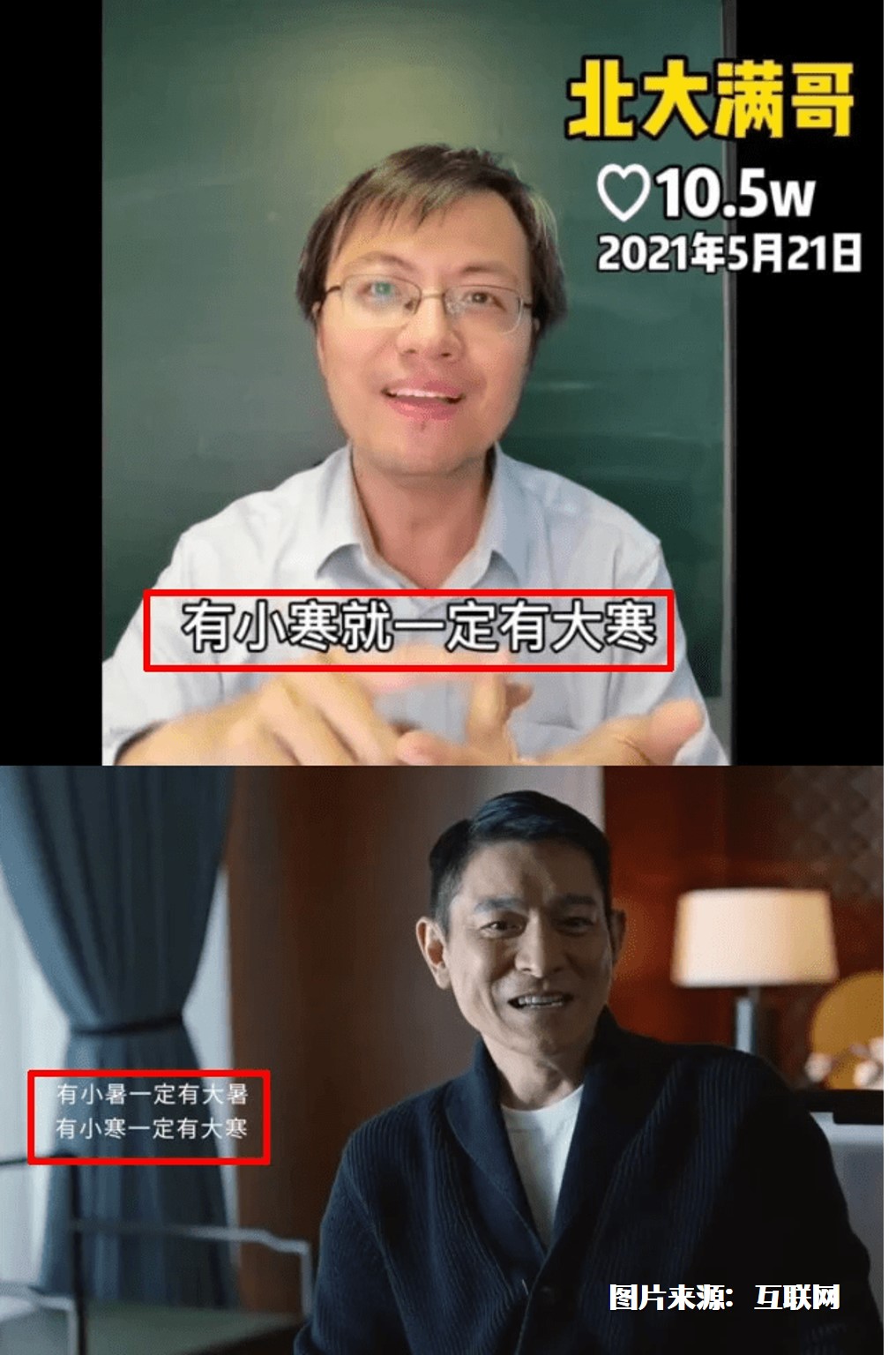 除了“有小暑一定有大暑,有小寒一定有大寒。但是小满一定没有大满”这类带有巧思的句子,被奥迪原封不动地运用在广告之外。刘德华在广告中说出 “送你一首我喜欢的诗,花未全开月未圆,半山微醉尽余欢;何须多虑盈亏事,终归小满胜万全” 的诗词,也是源自北大满哥笔下。