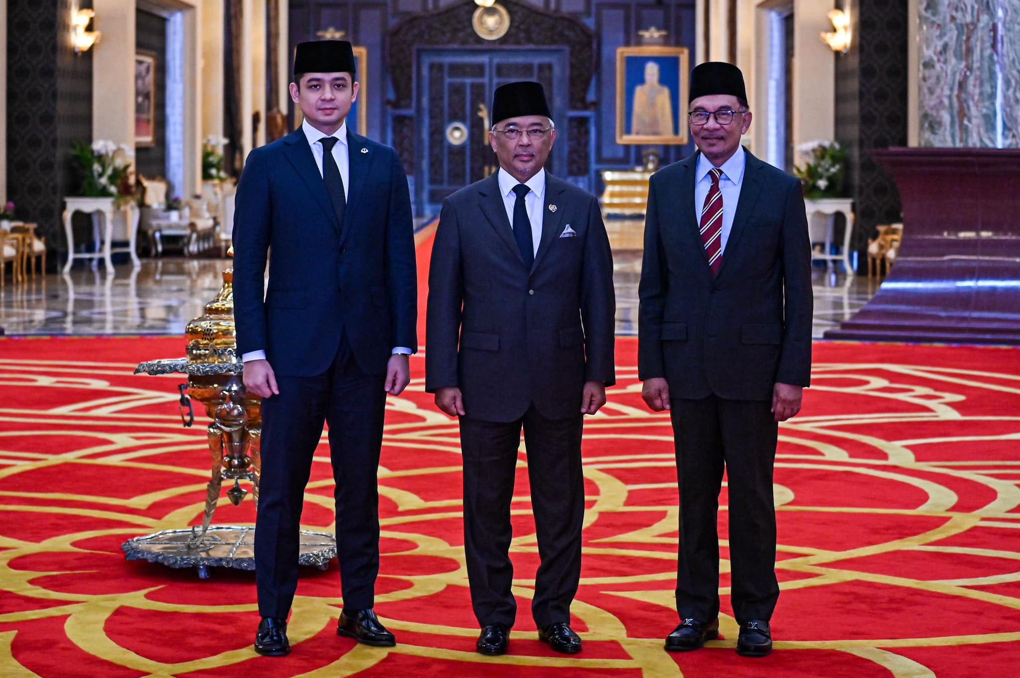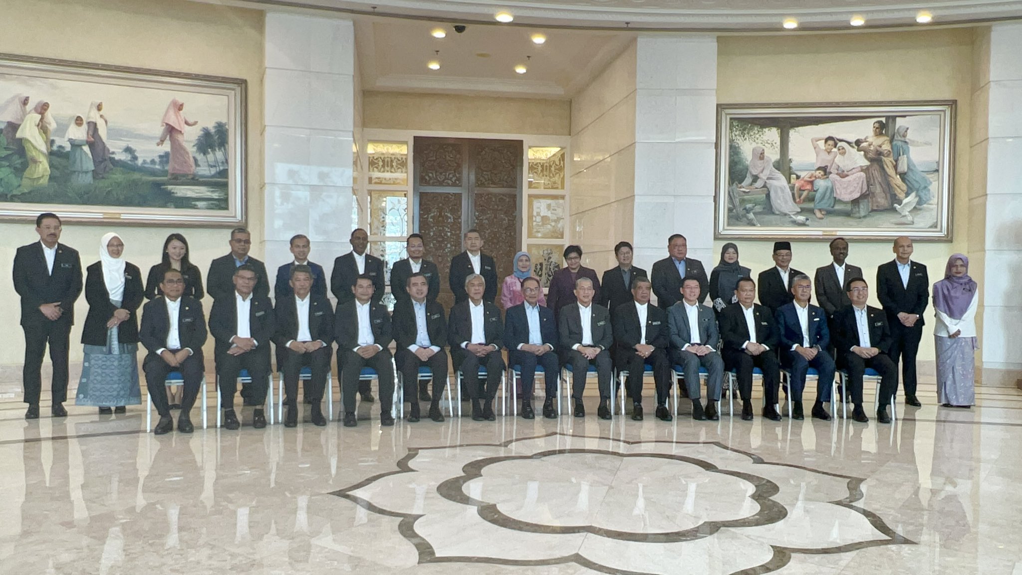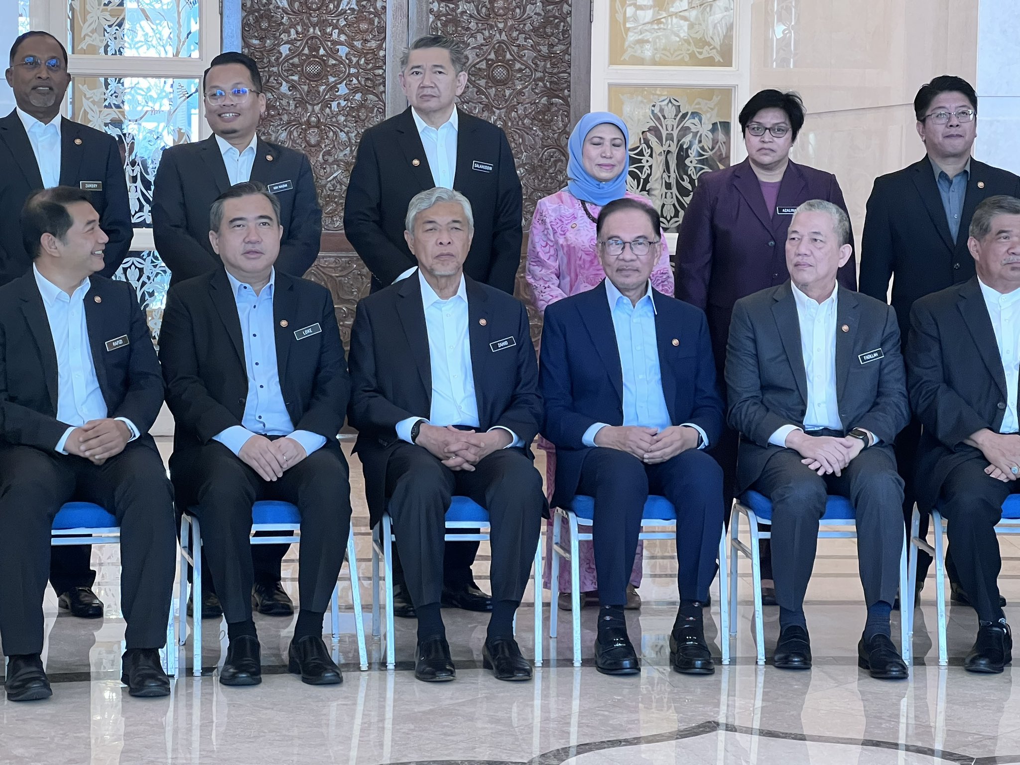 安华出任我国第10任首相后,一举一动备受关注。他今早与内阁成员召开首次正式会议后拍全体照。然而,这张“全家福”却引起不少人关注,因为内阁所有成员,包括安华都没有打领带!