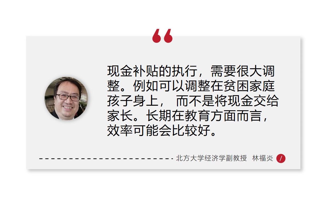 林福炎表示,现金补贴的经济效益其实非常有限,甚至有可能降低国人的生产力。因为大家如果只要伸手就拿到钱,过度依赖补贴过生活,到时人们的工作率降低,生产量自然会减少。