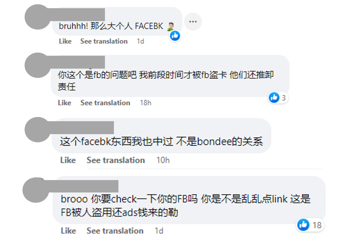 “你是不是乱乱点link,还是FB被盗用面子书广告(FB Ads)来还钱叻?”