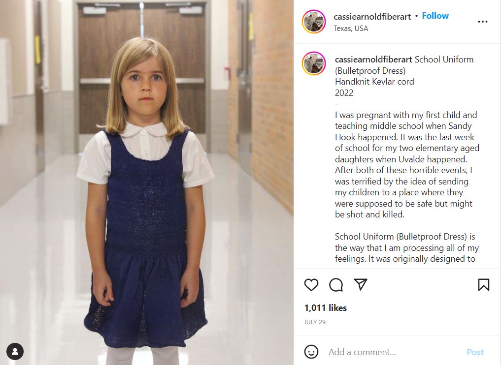 另外,同样来自德州的美术老师兼母亲,也一样为女儿制作了“防弹连衣裙”来嘲讽政府的不敏感。