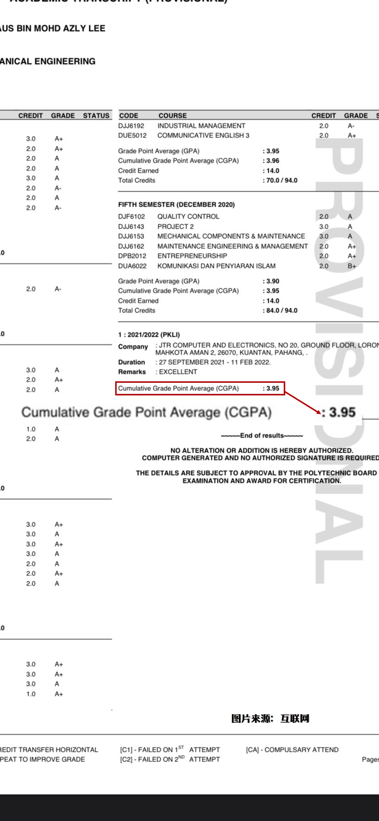不过,值得注意的是,网民在看到男子成绩后大吃一惊,因为该男子的成绩竟是CGPA 3.95!