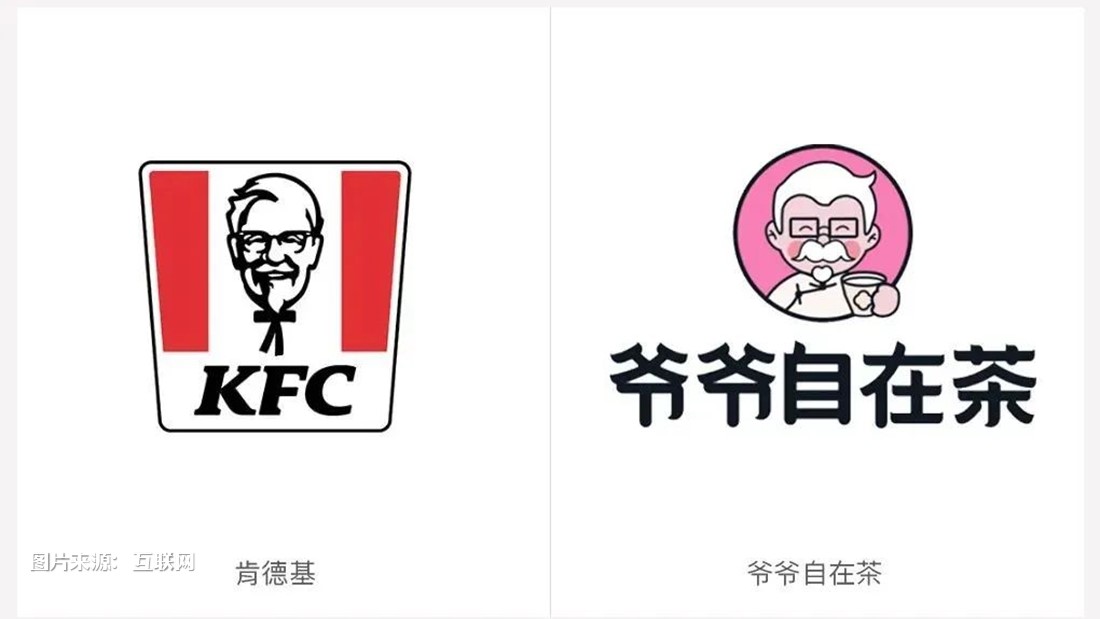 不仅如此,肯德基的标志来到“爷爷自在茶”,也变得更加年轻化,走的是可爱卡通风格。