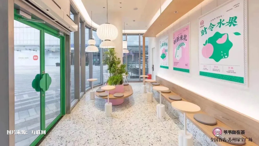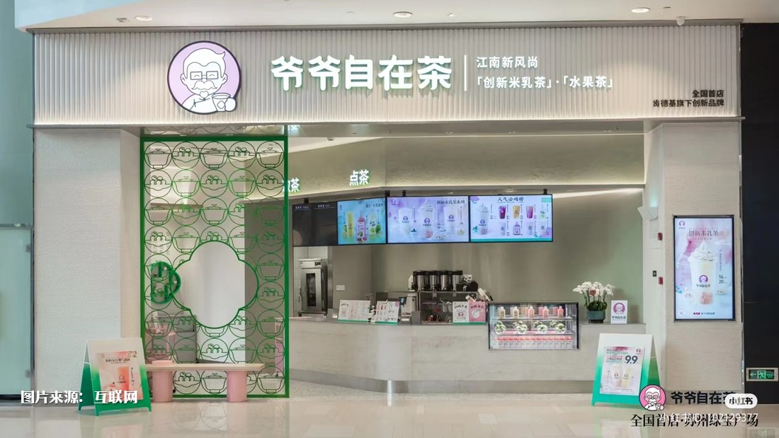 中国肯德基旗下独立茶饮品牌“爷爷自在茶”第一家店面日前在苏州正式开张。