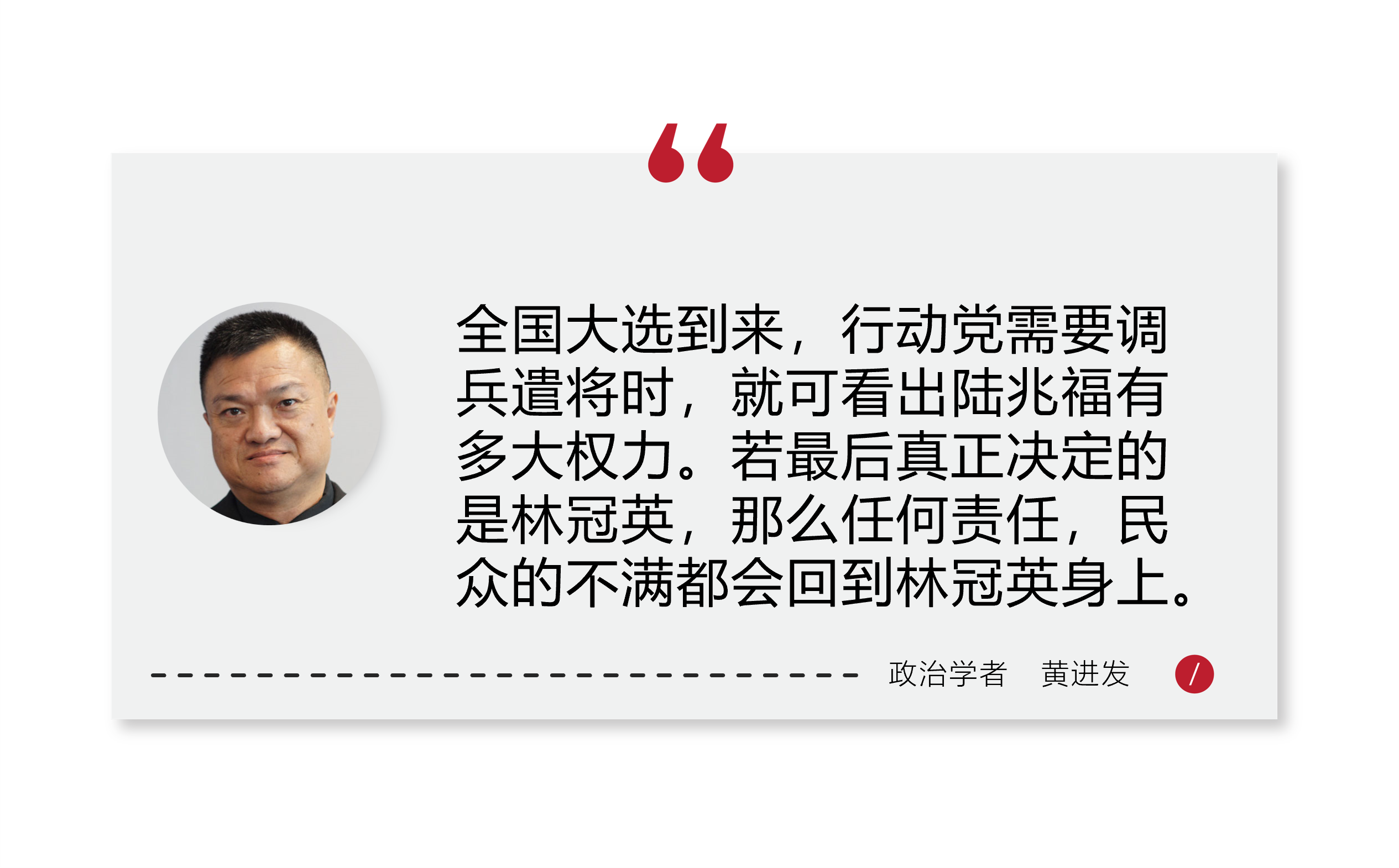 黄进发相信,林冠英应该有足够的政治智慧,让陆兆福和他的中生代的领袖,有所发挥,去引领行动党走向另一个高峰。现在江湖一切有关林氏父子的风言风语,相信不需要太久的时间就可得到验证。