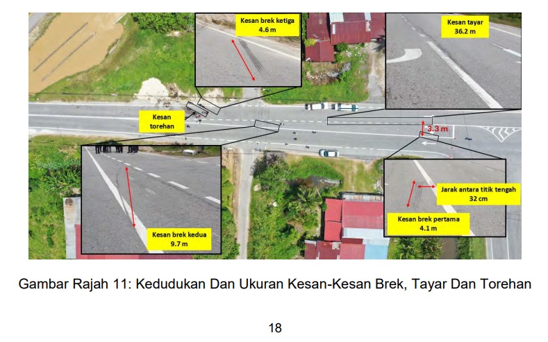 尽管如此,报告还提到,根据陆路交通局和电脑验车中心(PUSPAKOM)事后的检查结果,发现沙石罗里的鼓式刹车系统出现过热现象,极有可能是事故期间过度踩煞车造成。