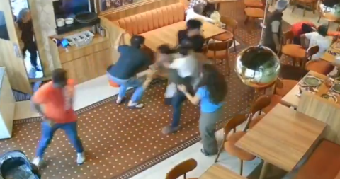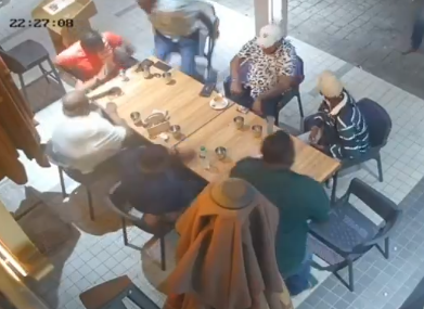 社交媒体今早流传数段视频,其中一段画面可见,案发时7名男子正在餐馆外用餐闲聊,突然一名蒙面枪手走近他们,并开枪袭击。