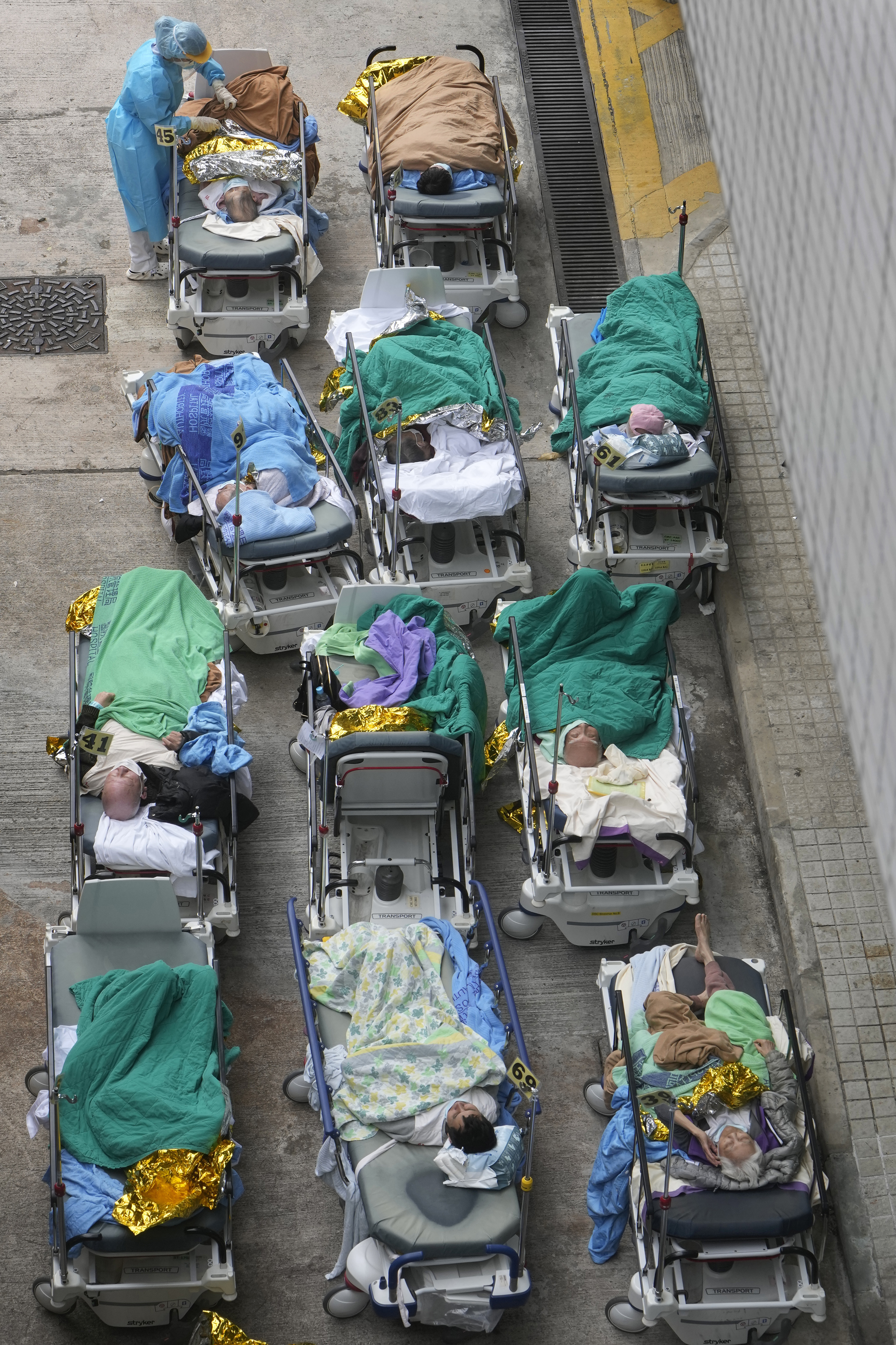 确诊病患户外就医根据英国《卫报(The Guardian)》记者现场直击,医院走廊被病床挤爆,一些病人甚至得和垃圾桶比邻、厕所由于人手紧缺没人清理、不时有臭味传出、用过的卫生纸、没冲干净的粪便更是随处可见。