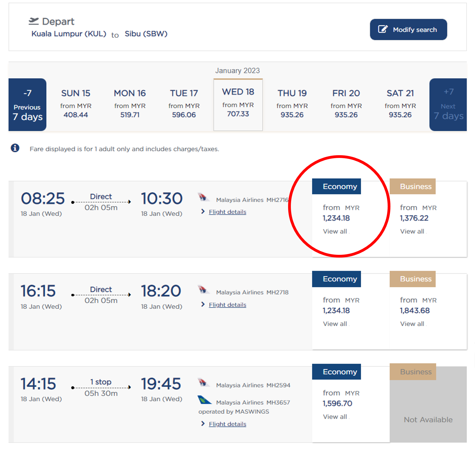 - 从吉隆坡国际机场飞往砂拉越诗巫机场,机票价格介于 600 至1200 令吉。