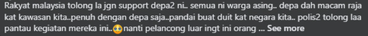 “大马人拜托不要去支持他们,这些都是外籍人士,他们(拍照党)以为自己是那边的主人了。”
