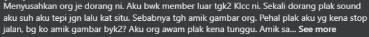 然而,一位名为阿迪布(Adib Mazlee)的游客却控诉,其朋友原本打算在KLCC拍照,但却被“拍照党”阻止。