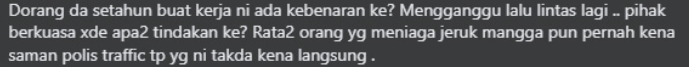 “他们已经在这里工作1年了,他们有许可证吗?而且还阻碍人行道,有关当局都不采取行动吗?那些在路边售卖腌芒果的人都曾被交警开罚单,可是这些人却没事。”