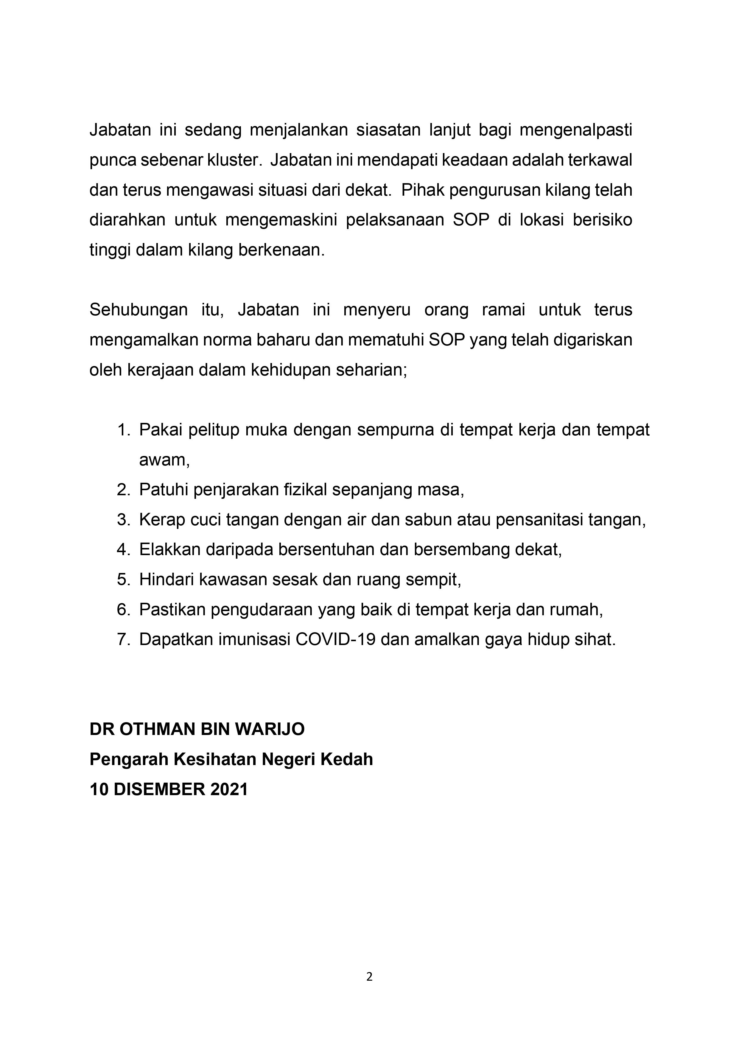根据文告,居林美哈工业区感染群属于”工厂感染群“,涉及居林县巴东色海的巴东美哈区。