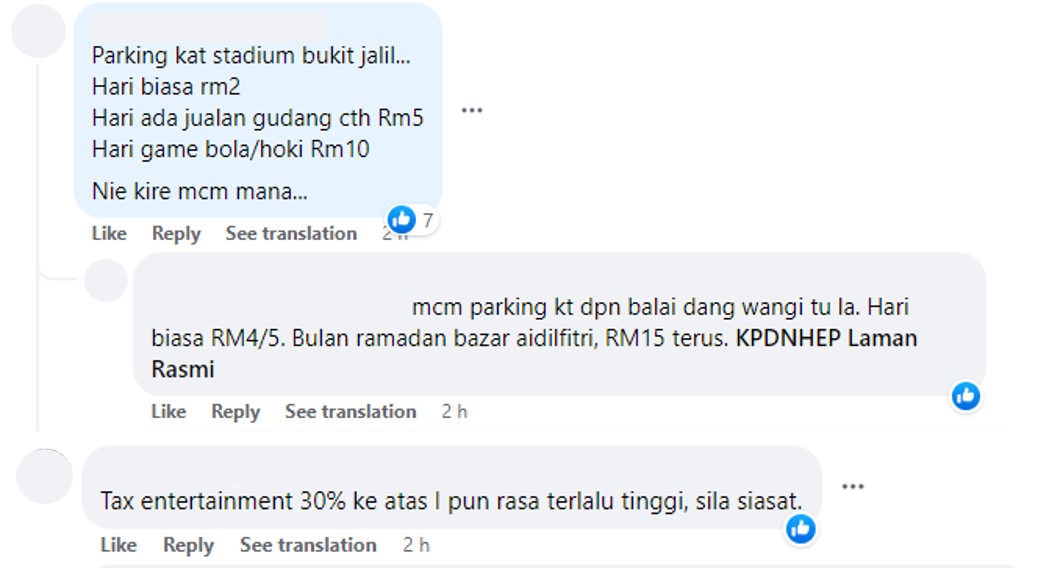 除了饮料售价之外,好几个网民也点出了停车场收费高昂事件,要求当局促查。而30%的消费税也成为另一项网民关注的课题。