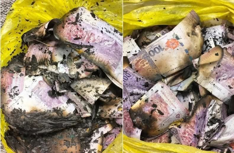 消息人士透露,反贪会官员上周四(7月10日)突击搜查该名涉案经理住所时,在浴室内发现大量被烧毁的100令吉钞票,估计总额约100万令吉。