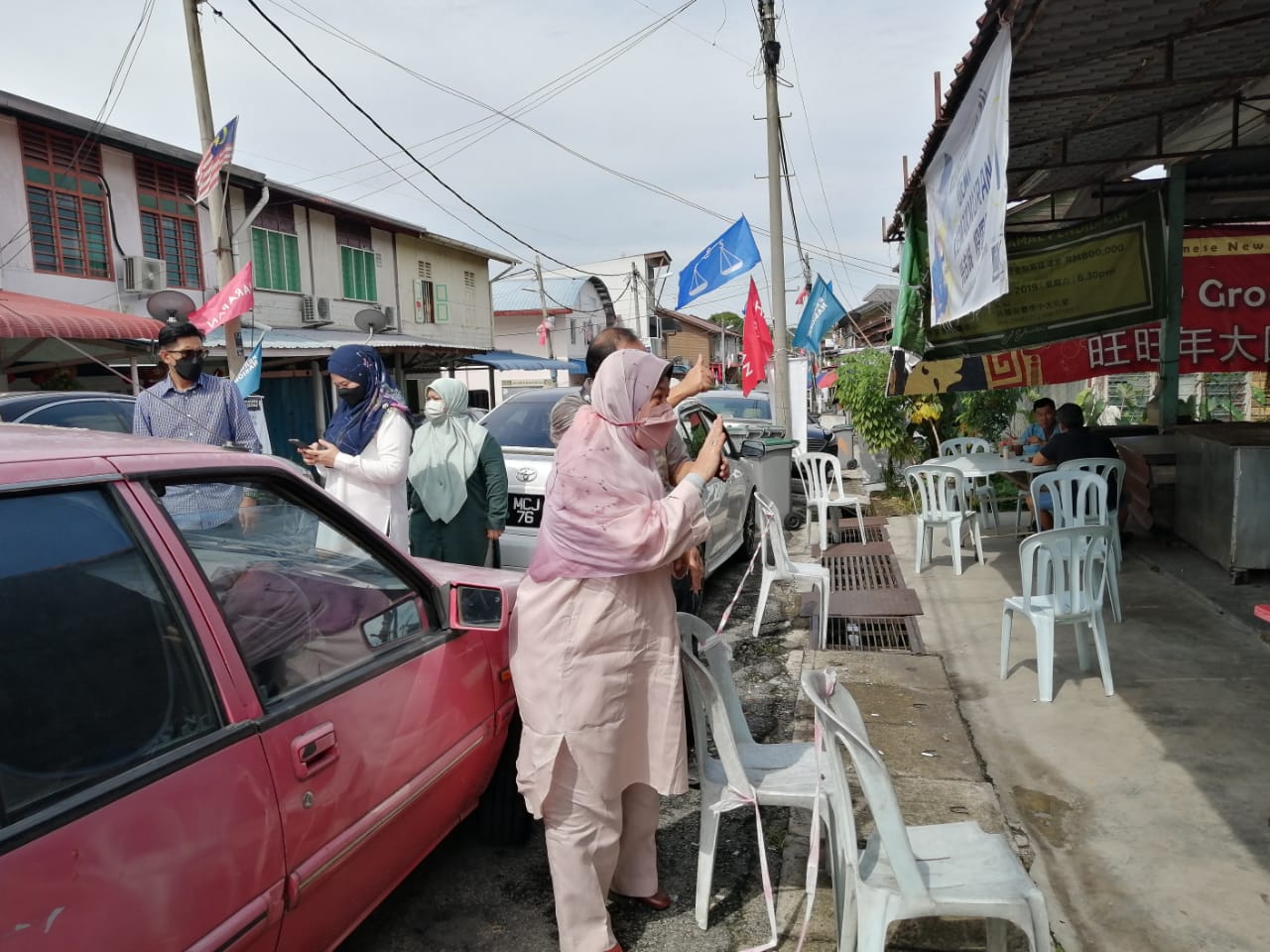 祖莱达今早携手国盟土团党唯一的华裔候选人、戴上揉,在马六甲马接峇鲁的一家茶餐室拉票。对此,希盟候选人罗秉浩到警局进行检举。
