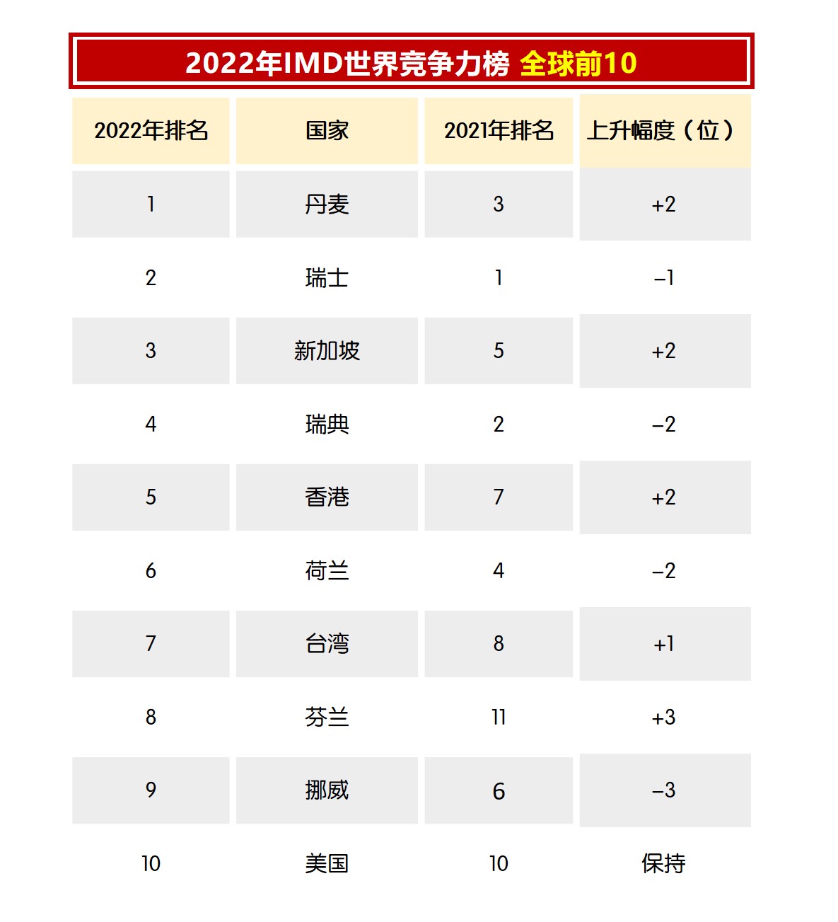 跻身世界竞争排名前10