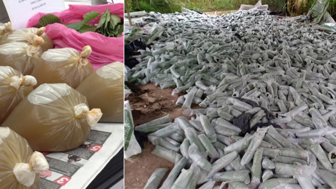 哥冬可以制成多种产品,其中将该草药熬成哥冬水(左)非法贩售的行径最为常见。