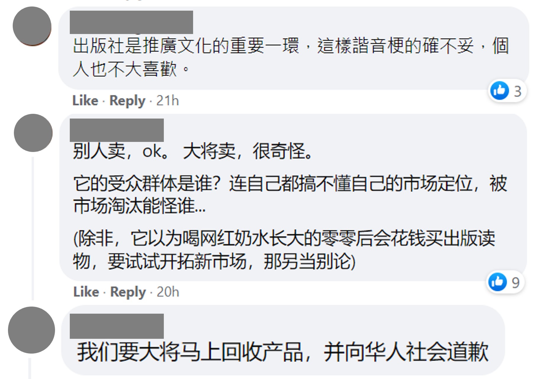 这起争议在本地两大面子书阅读群“我爱阅读”和“越读者”上,引起热烈讨论,大部分群友直言无法接受脏话谐音、观感极度不佳、失格、教坏小孩等。