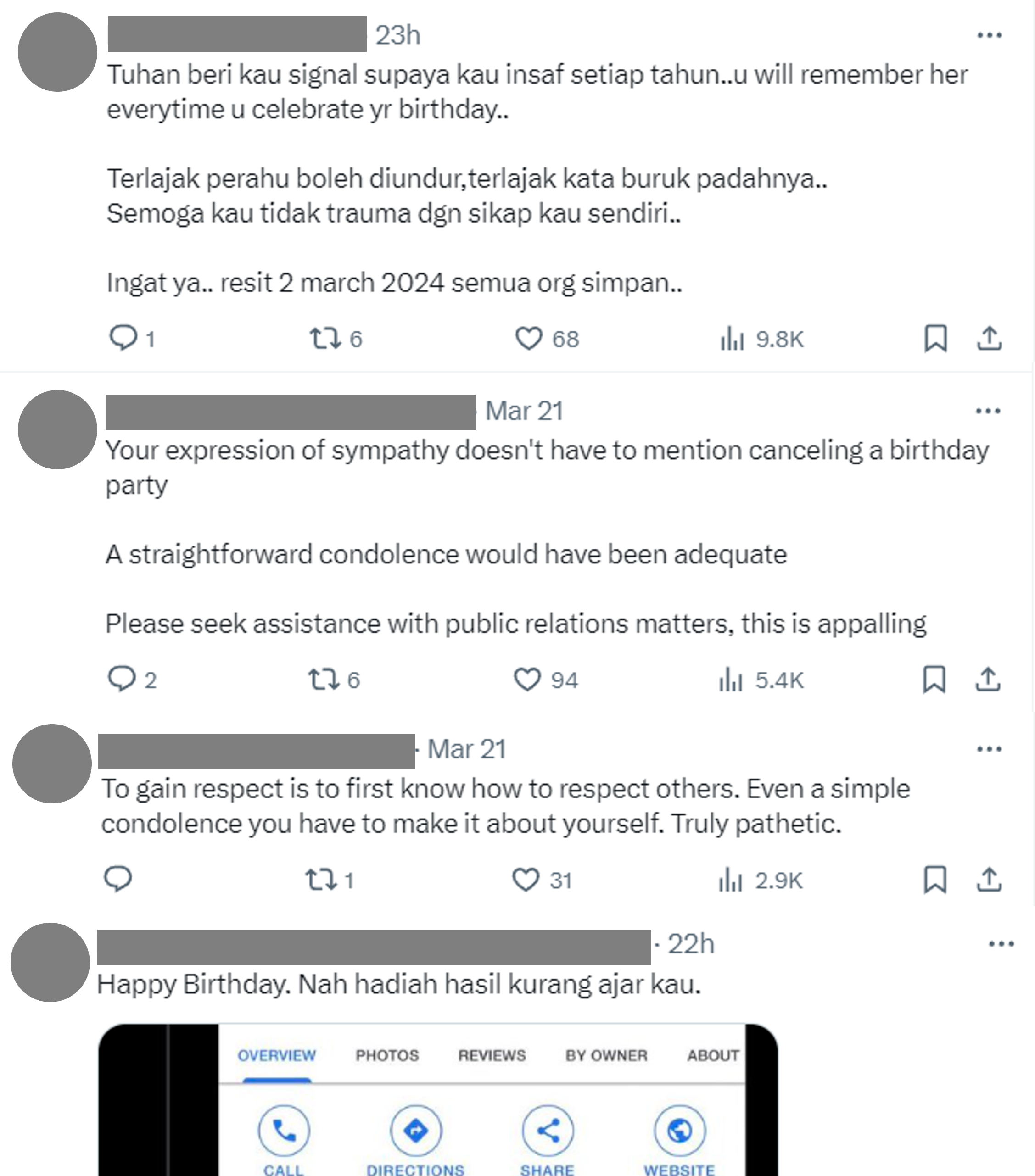 No one cares whether it's your bday or not la. You can just express your condolences like any other person. Tone deaf. https://t.co/GI8SdDaRa0