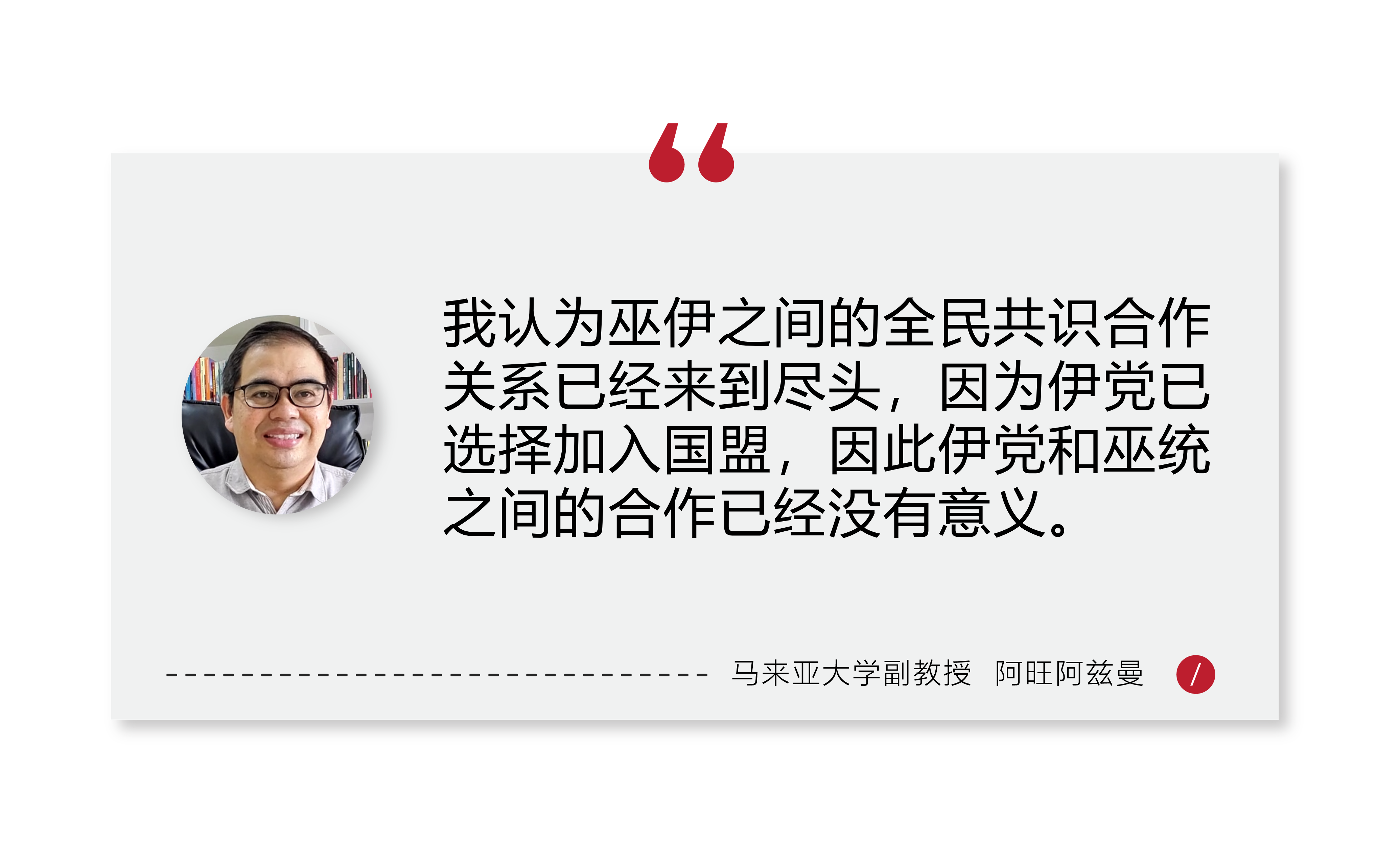 对此,马来亚大学副教授阿旺阿兹曼和政治学者黄进发,在接受《八点最热报》访问时都一致认为,全民共识基本上已算是名存实亡,当伊党选择靠拢国盟的那一刻起,就已经意味着巫统和伊党之间的合作破局。