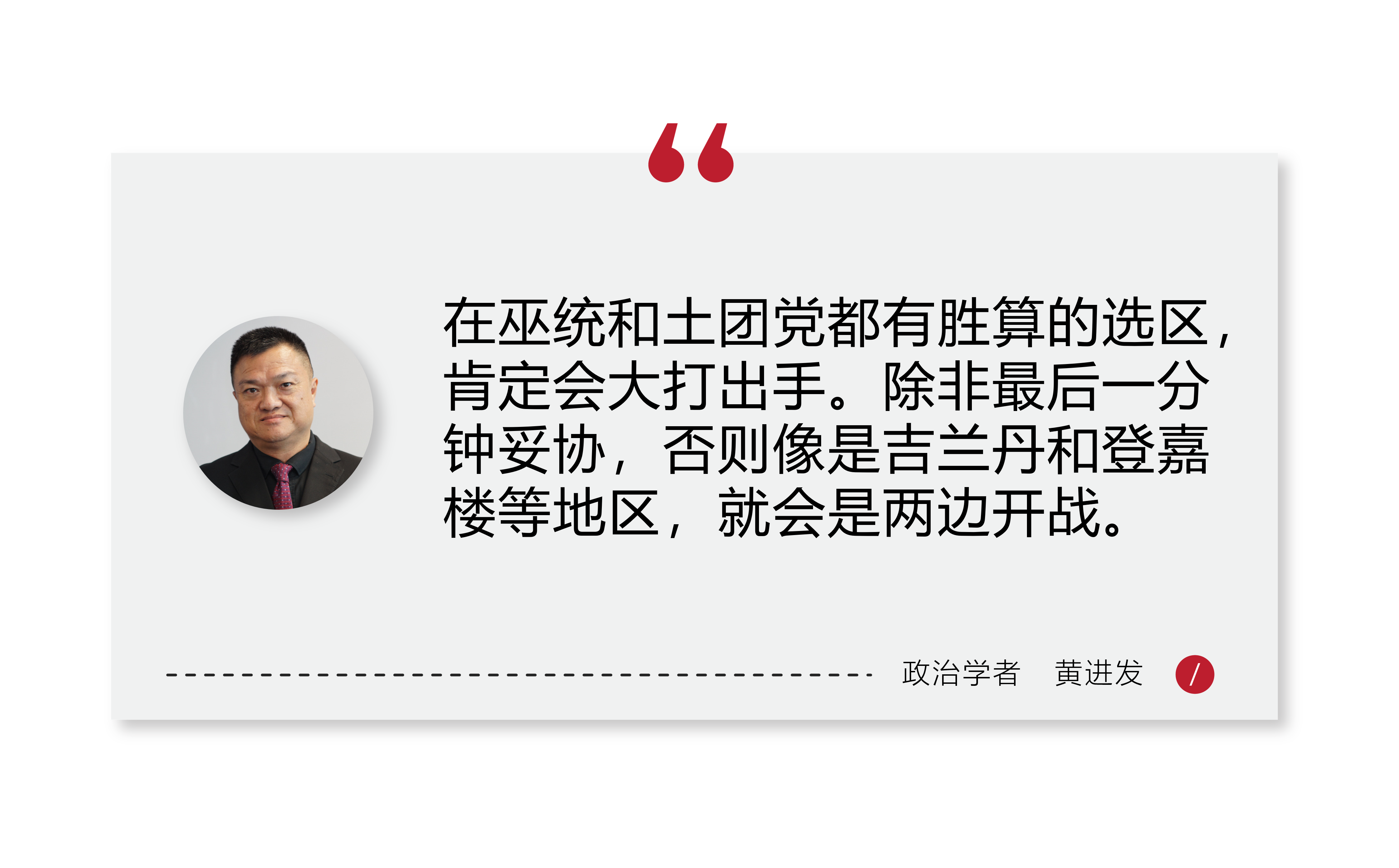 黄进发大胆预测,在下届大选,巫统将攻打所有土团党的选区。只有在双方都觉得胜算不高、对阵希盟没有优势的选区,才会做出礼让。