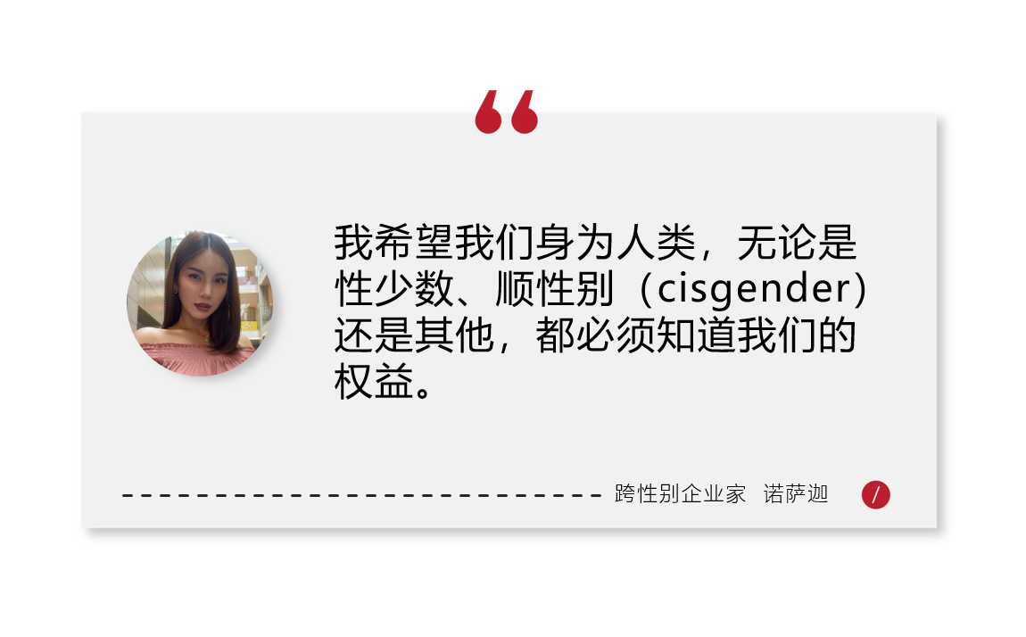 成年后的她为了追求自身性别认同,进行手术移除男性特征,随后以女性身分生活,并积极发展事业,在社交媒体也表现活跃。
