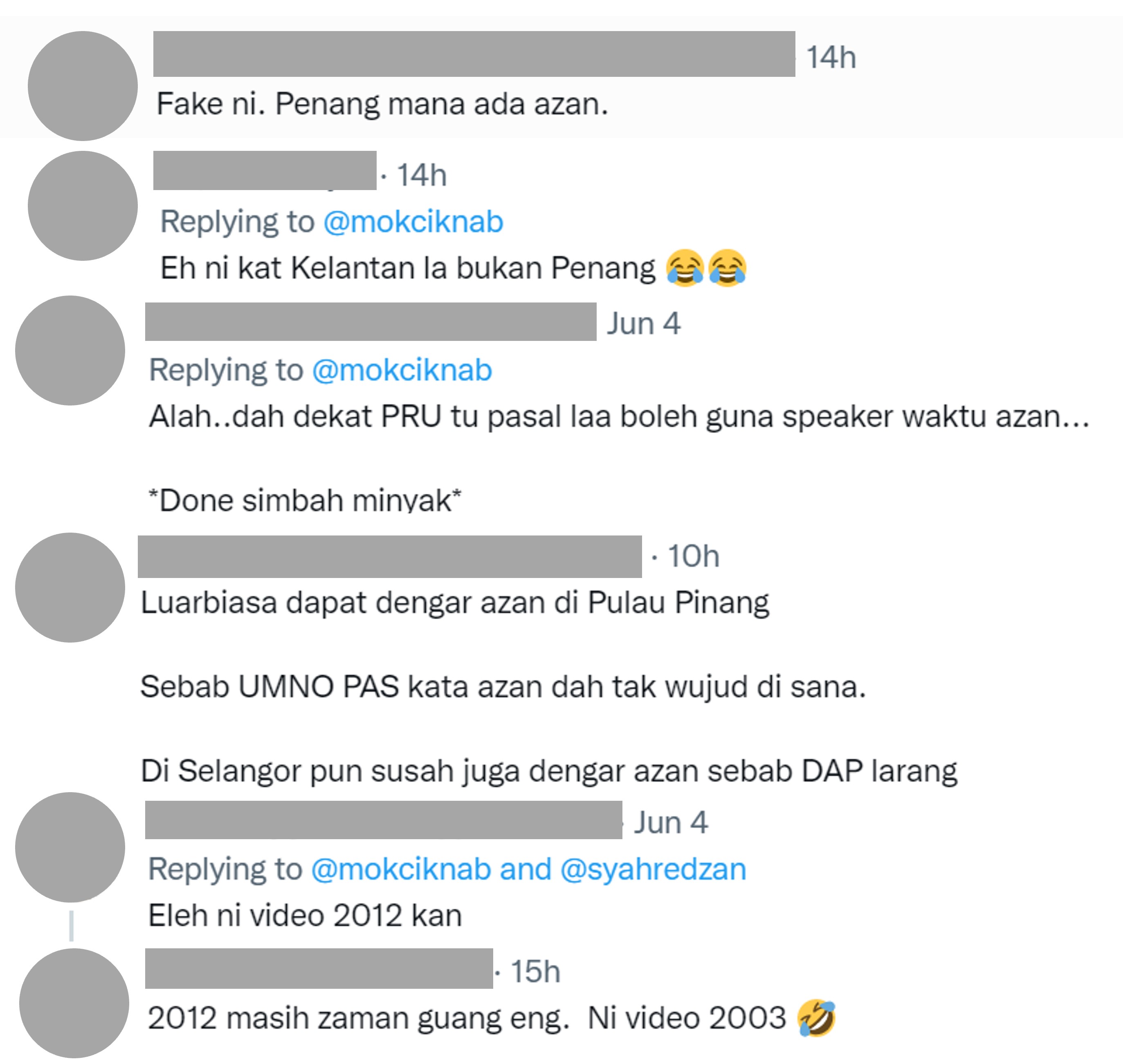 推特用户@mokciknah前天(6月4日)发布推文,从视频中可见槟城乔治市街景,判断时间为黎明前,视频中还有从清真寺扩音器传出的召祷声(azan)。