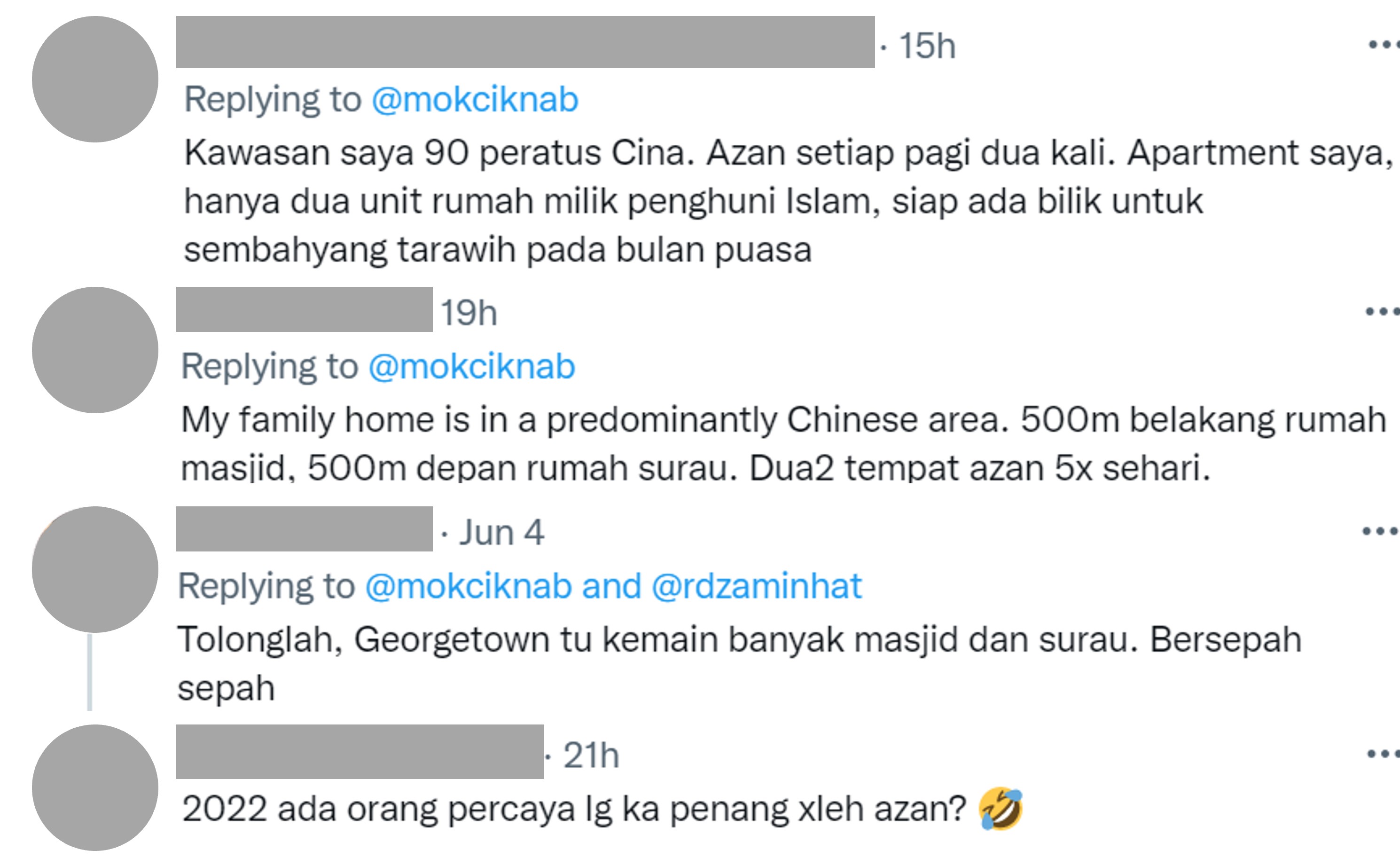 多名自称是槟城人的网民跳出来反驳称,包括华裔占90%的社区,槟城有许多清真寺和祈祷室。清真寺每日固定有5次召祷,早上甚至有2次。