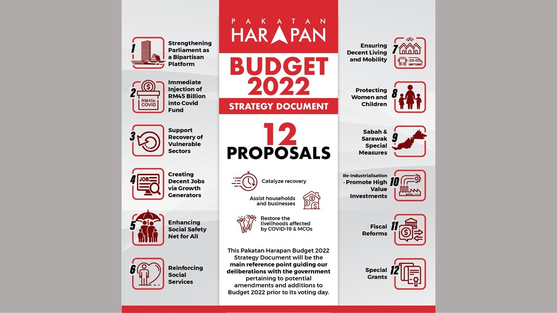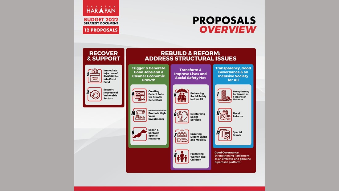 希盟赶在政府10月29日提呈《2022年财政预算案》之前,率先在今天公布替代版的“财政预算案策略文件”(Budget 2022 strategy document)。当中涵盖12建议,包括改革国会、注资450亿到抗疫基金、协助脆弱域复苏等。