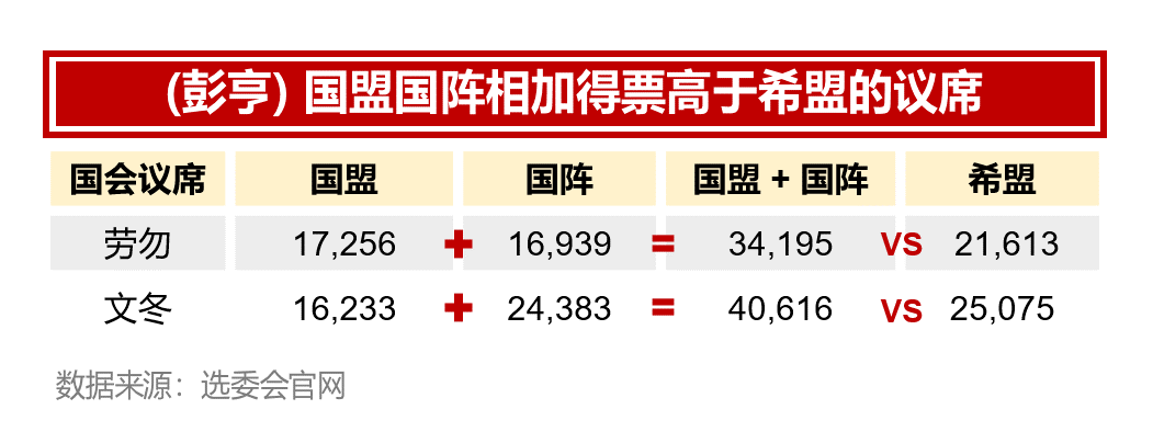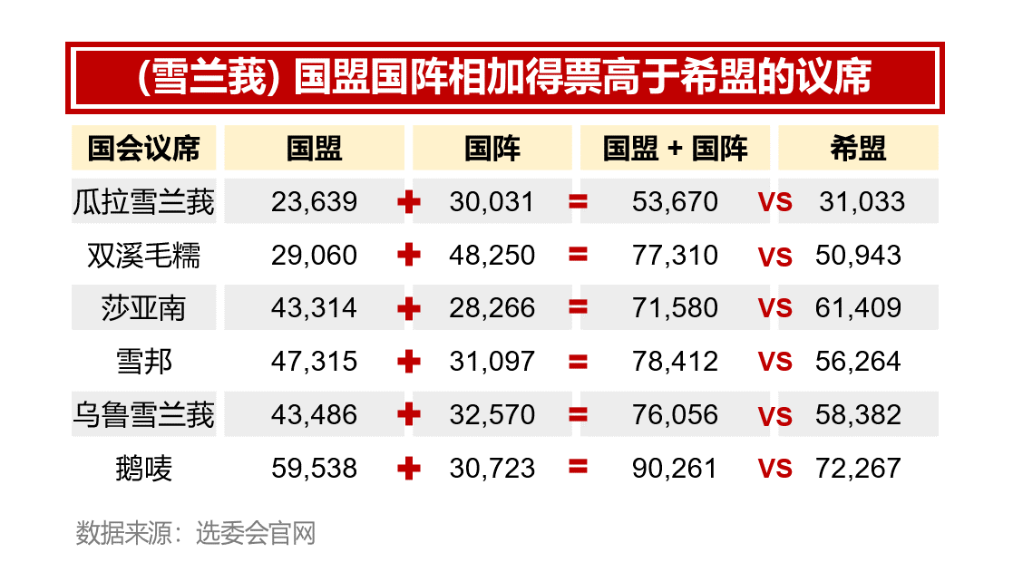 “而国盟和国阵相加的得票率高达33,197,远超于希盟的票数。”